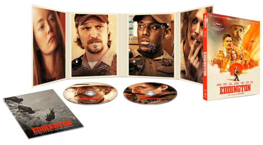 Sorti mi-juillet en France dans les salles obscures, Eddington (2025) bénéficiera en fin d’année d’une édition 4K Ultra HD Blu-ray chez Metropolitan. La sortie française est attendue pour le 5 décembre, dans une édition Digipack limitée contenant le film en version Blu-ray et 4K UHD. On y retrouvera en complément un livret de 16 pages, le making of et du matériel promotionnel (teaser, bandes-annonces, affiches, interviews cannoises, clip de campagne).