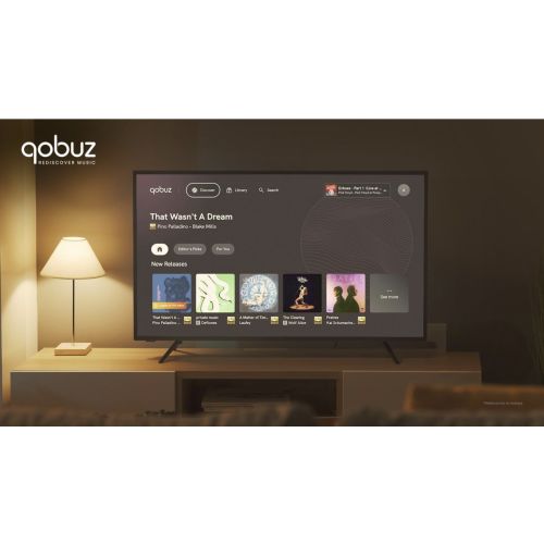 Autre fonctionnalité phare : Qobuz Connect. Celle-ci permet de contrôler la lecture à distance depuis l’application mobile Qobuz sur smartphone ou tablette (iOS et Android), le téléviseur faisant office de récepteur.