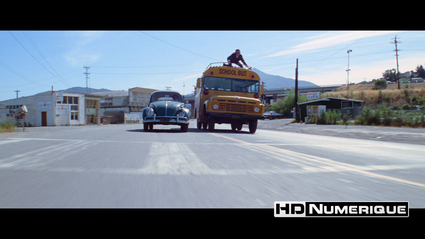 La gestion du grain argentique soulève quelques réserves. Elle se révèle plus incohérente, alternant entre des plans au rendu organique préservé et d'autres visiblement "dégrainés" avec plus d'insistance. Mais c'est sur le terrain de la lumière que cette édition se démarque radicalement. L'étalonnage prend le contre-pied de la précédente édition Blu-ray. L'image se présente nettement plus lumineuse et froide, tout en faisant la part belle à des touches de couleurs franches : les bleus du ciel californien, la verdure des parcs urbains, et les rouges des enseignes lumineuses qui s'affichent avec moins de bavure. Les tons chair ont été débarrassés de l’aspect halé (même un peu "cuit”) que l'on pouvait observer sur le précédent master. Les peaux se révèlent plus claires et neutres, mais elles ont aussi une fâcheuse tendance à mêler des petits zones pâles et nuances rosées qui peuvent déplaire. Quoi qu'il en soit, le point crucial réside dans ce traitement HDR très "musclé", typique de certaines restaurations catalogue de l'éditeur. Les extérieurs de nuit restent très denses. Mais sur les intensités lumineuses déployées, les mesures donnent le vertige : une moyenne de pics lumineux relevée à 1198 nits, avec des pointes régulières observées autour des 4000 nits.
