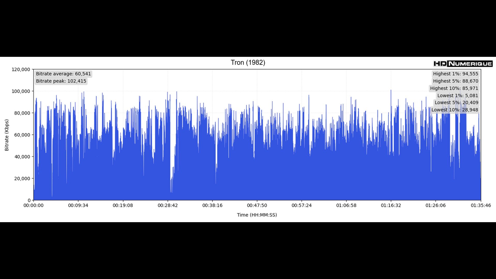 La restauration, orchestrée par Steven Lisberger lui-même, a consisté en une re-numérisation des négatifs originaux : allant jusqu’au 6K pour les éléments VistaVision et 8K pour le 65 mm. Ce vaste ensemble a été unifié dans un flux 4K, avec un long travail de restauration orchestré par Prime Focus, et un étalonnage HDR piloté par le coloriste Mike Underwood de chez Picture Shop. L’édition française 4K Ultra HD Blu-ray restitue cette présentation en 2160p, ratio 2.20:1, et double compatibilité HDR10/Dolby Vision (DV-FEL, sous 12-bit).