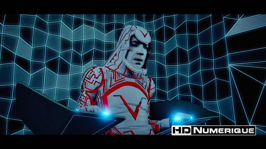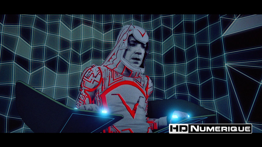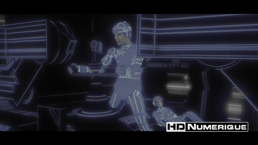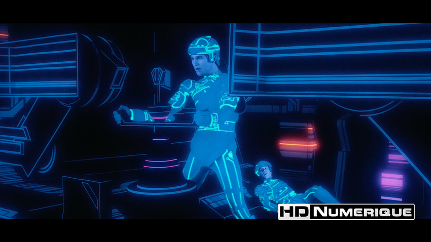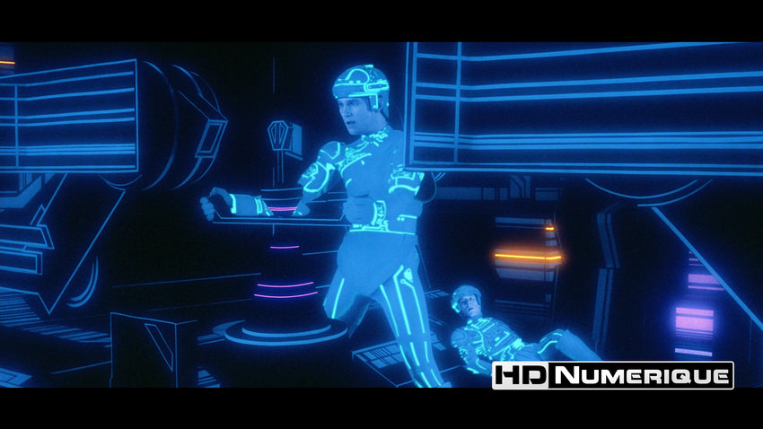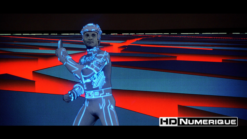 L'esthétique reste particulière, avec de vastes aplats virtuels et des environnements dématérialisés comparables à très peu de projets. Mais l’apport du nouveau scan se fait immédiatement sentir. Avec un piqué global d'une très belle tenue et une structure du grain photochimique fine et homogène. On en profite dès les premières séquences dans la salle d’arcade de Flynn puis dans les bureaux d’ENCOM. Par rapport au précédent Blu-ray, marqué par un étirement horizontal et une compression MPEG-4 approximative, la géométrie a été corrigée et les efforts de restauration sont immédiatement perceptibles. On observe quand même une réduction apparente du grain opérée sur les séquences du "monde réel", sans doute pour préserver une continuité avec les scènes tournées en 65mm.