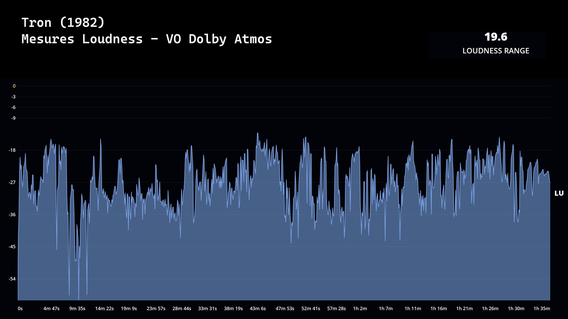 La version originale est restituée en Dolby Atmos (core TrueHD 7.1, 5012 kbps, sous 24-bit) avec une valeur de Loudness Range mesurée à 19.6 LU. La VFF reste en DTS 5.1 (1509 kbps).