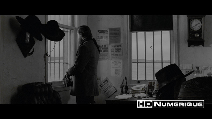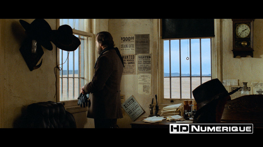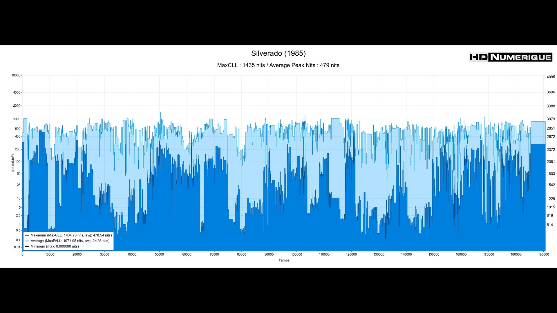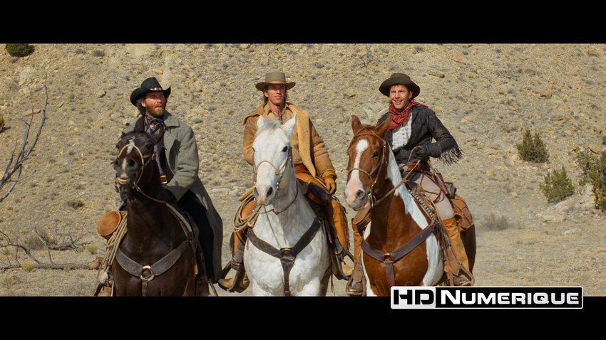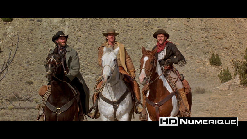 En matière d'étalonnage, les dérives rougeâtres et magenta qui nuisaient tant à l'ancien master HD ont été corrigées. Les contrastes, qui sont au cœur de l'esthétique western, sont également amplifiés. Les scènes diurnes apparaissent nettement plus lumineuses, presque écrasantes sur les plans en extérieur jour — à l'image de l'arrivée initiale de Paden (Kevin Kline) sous un soleil de plomb. À l'inverse, les séquences nocturnes et en basse lumière, que ce soit dans la prison ou lors des échanges autour du feu de camp, bénéficient de noirs vraiment denses. Donc des contrastes forts avec une plage dynamique mobilisée plutôt audacieuse. Les pics lumineux affichent une moyenne de 480 nits. Les reflets du soleil sur la rivière lors de la traversée du convoi (46 min), les sources de lumière pratique (lustres, bougies) du saloon, ou encore les flammes lors de la scène d’incendie (1h35) acquièrent une intensité bien plus vive à l’écran.