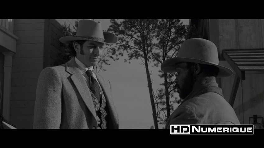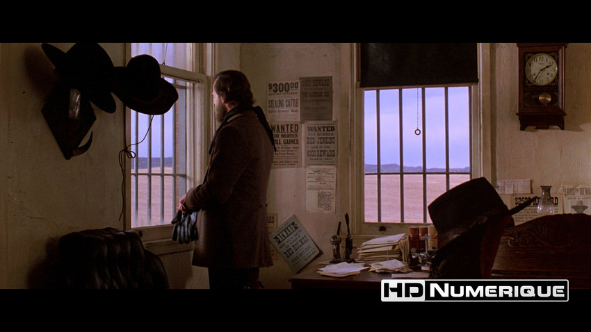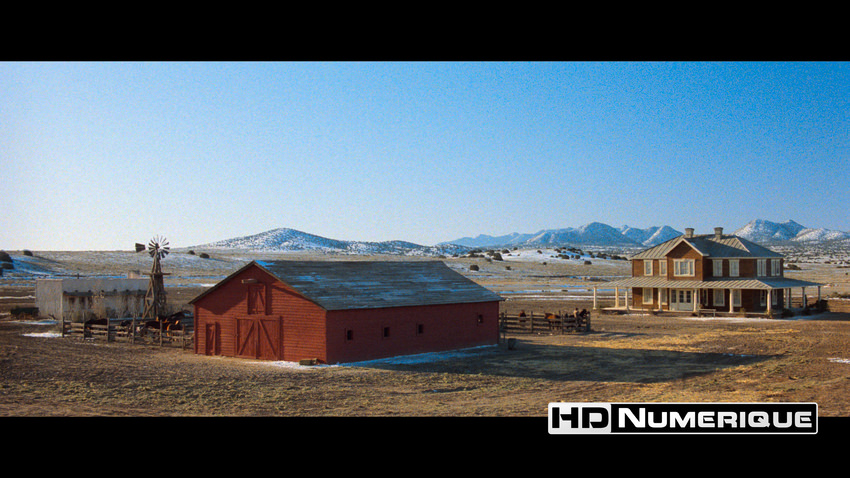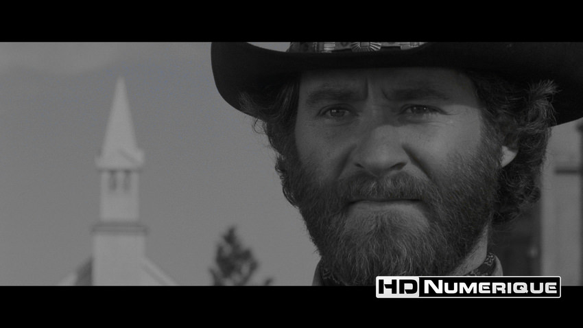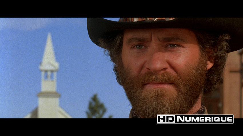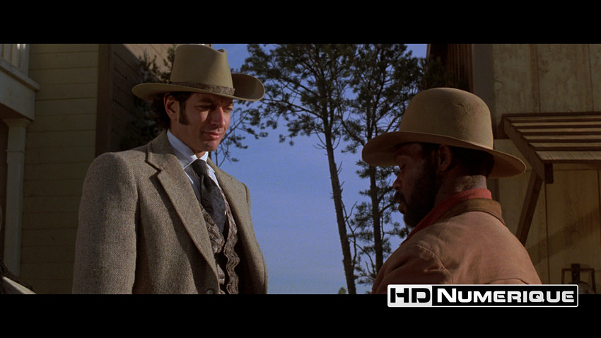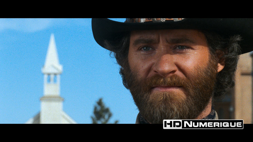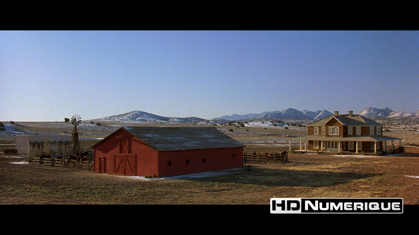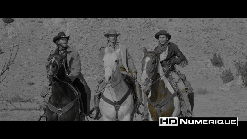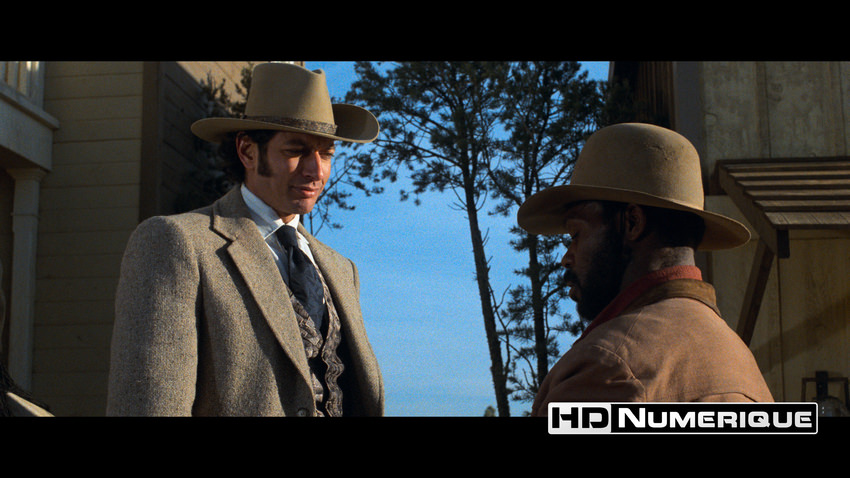 Si les scènes portées par les titres en surimpression du générique sont, logiquement, encore corrélées à une définition en retrait, le gain qualitatif saute aux yeux dès les premiers plans sur Emmett (dès 5mn38). L’apport du nouveau scan se fait ainsi très rapidement ressentir face au Blu-ray précédent, et cette impression ne vous quittera plus jusqu’au générique final. L’image gagne en piqué et précision : les micro-détails sur les visages (le cuir de la peau d'Emmett, la barbe de Paden) ou les costumes (la trame du duster de Jake) attireront peut-être votre attention. Les vastes paysages du Nouveau-Mexique s'affichent eux aussi avec une richesse de détails inédite. Tout cela enveloppé de la texture granuleuse du 35 mm, et d’un encodage HEVC d’une belle tenue générale.
