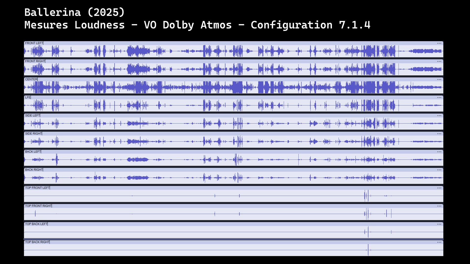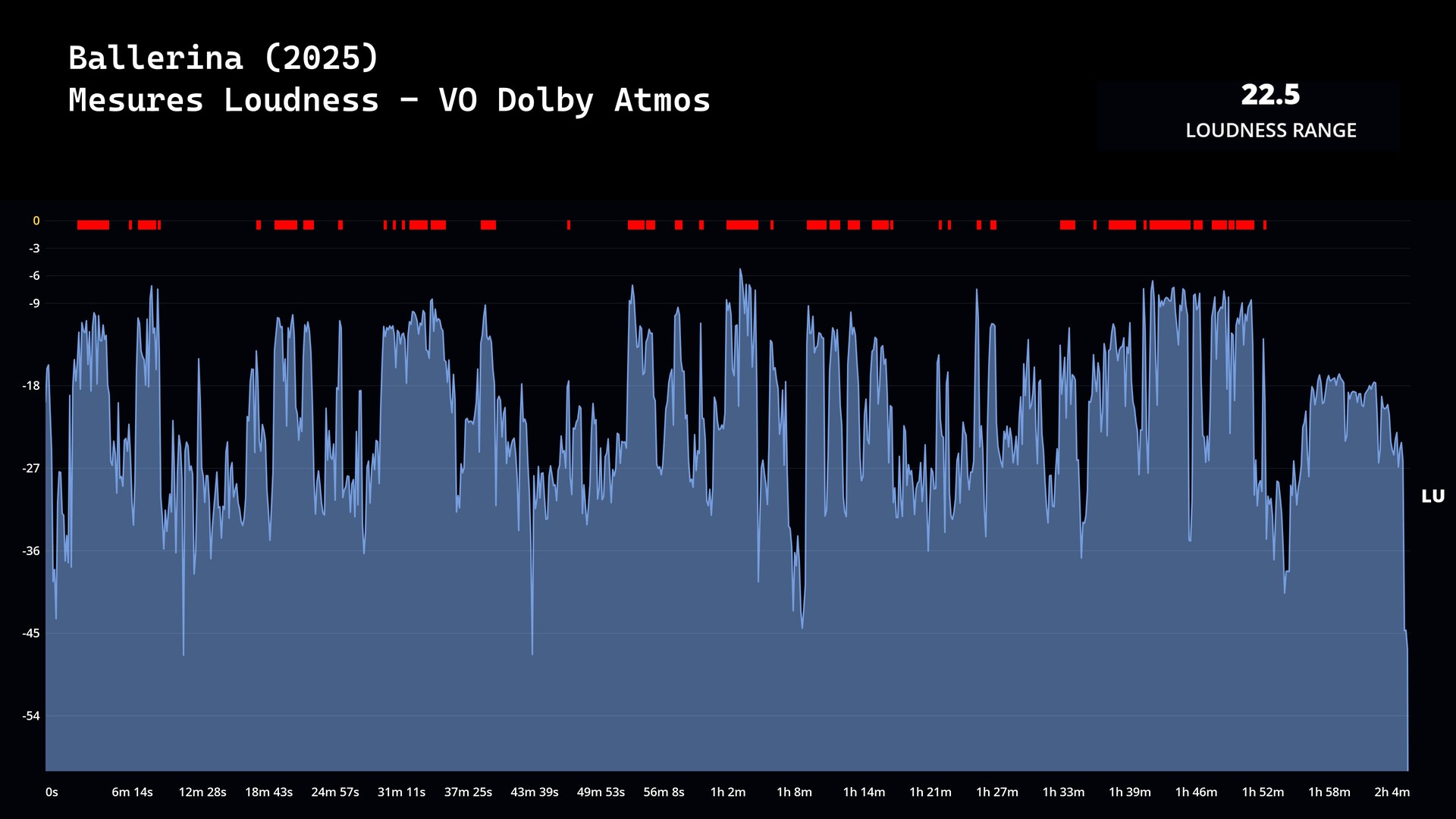 VO et VF sont restituées en Dolby Atmos, core TrueHD 7.1 (4833 kbps & 4757 kbps sous 24-bit) avec une valeur de Loudness Range mesurée à 22.5 LU en version originale.