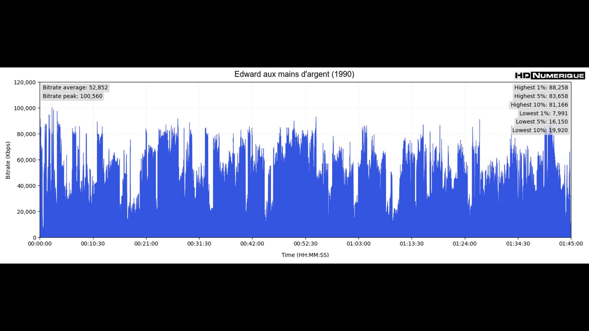 Il y a toujours un plaisir familier, presque une fébrilité, à redécouvrir un film aussi culte qu’Edward aux Mains d'Argent (1990) dans un nouveau support. L’œuvre séminale de Tim Burton, véritable conte gothique moderne, n’en est pas à sa première édition vidéo disque. Pour ce test comparatif, nous sommes repartis de l’édition de référence à date : le Blu-ray de 2015, déjà tiré à l’époque d’un remaster, pour apprécier objectivement les gains escomptés. Sur le plan technique, le film, tourné en 35mm (Panavision Panaflex Gold II et Platinum), nous est présenté sur un disque BD-66, avec une présentation 2160p, compression HEVC et un étalonnage HDR (avec les métadonnées Dolby Vision, DV-FEL sous 12-bit).