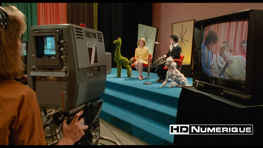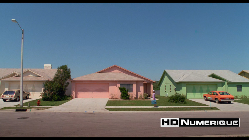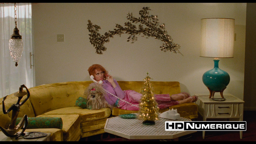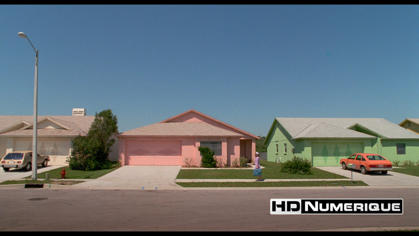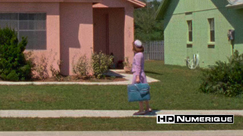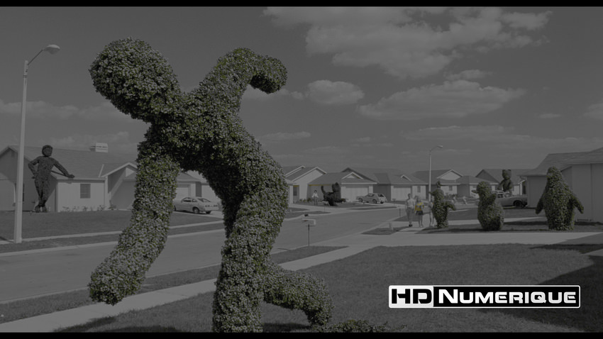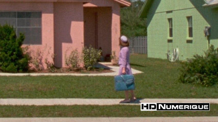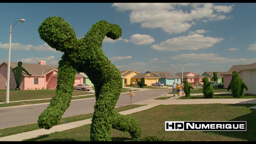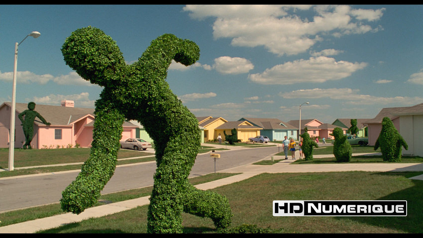 Quant au HDR, son apport doit être relativisé. La dynamique reste étonnamment prudente, avec des pics lumineux plafonnant à une moyenne de 144 nits. Les contrastes ont été ajustés et sont plus enchanteurs. Mais l’approche reste clairement conservatrice sans véritable intensification des reflets (les ciseaux d’argent), ni de mise en valeur lumineuse significative. La vraie plus-value se situe ailleurs : dans le Wide Color Gamut (ici en BT.2020). C’est là que le disque prend davantage vie. Le film, fondé sur les contrastes de couleurs entre la banlieue acidulée et le manoir gothique, s’exprime plus librement, en s'aventurant bien au-delà du gamut REC.709 de la version SDR. Les façades pastel (bleu, vert, jaune) et les tenues flamboyantes des voisines comptent parmi les exemples les plus évidents à mentionner.