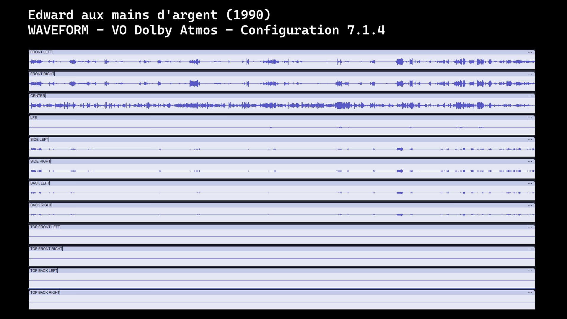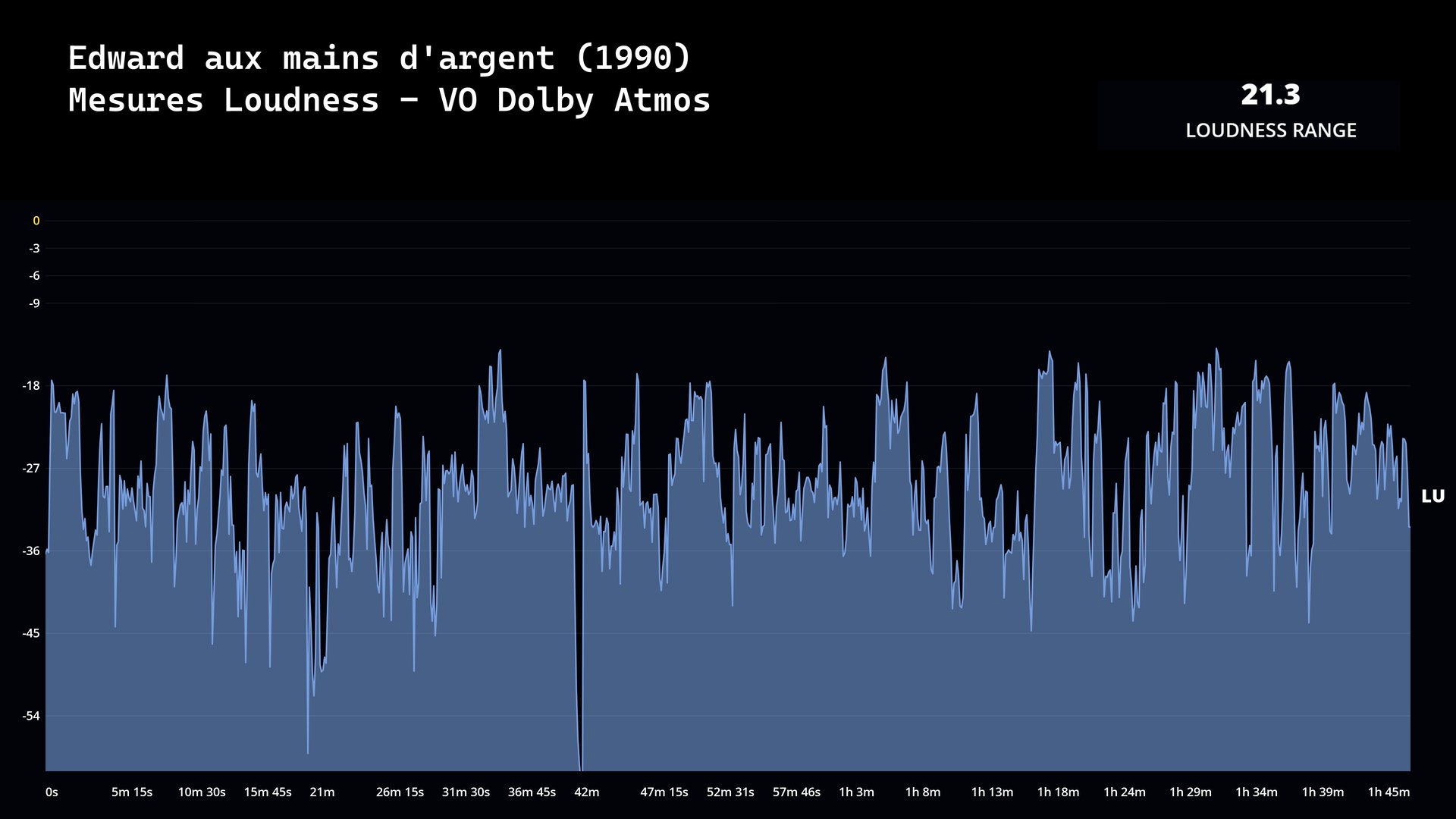 L'arrivée d'Edward aux Mains d'Argent (1990) en 4K s'accompagne d'un nouveau mixage en version originale Dolby Atmos. Une piste qui privilégie de manière frappante les canaux frontaux et qui reste très traditionnelle à l’écoute. Pour ne pas dire peu inspirée... L'essentiel de l'expérience, des dialogues à la musique, est projeté directement face au spectateur. L'activité surround se cantonne à un rôle d'ambiance environnementale d'une grande discrétion : quelques aboiements de chiens au loin, des chants d'oiseaux, ou de légers échos venant habiller l'acoustique des lieux traversés.