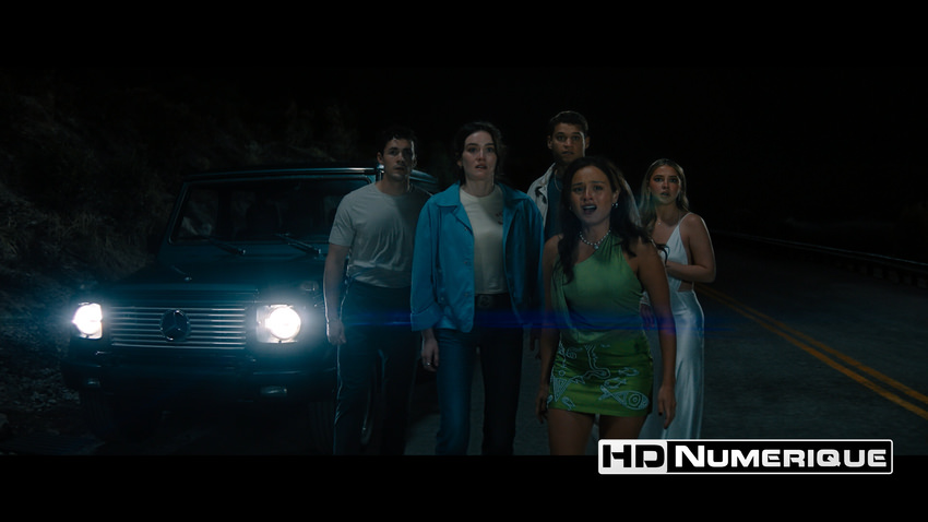 Le format UHD met particulièrement en valeur les scènes d’exposition, baignées dans une esthétique lumineuse et saturée, symbolisant l’insouciance de la jeunesse dorée. Plus tard, dans les scènes nocturnes horrifiques — inaugurées par la tragédie sur la route du 4 juillet — l’apport du format s’exprime surtout par le HDR avec des zones d’ombres qui respirent davantage et plus d’intensité lumineuse observable. C’est aussi dans ces moments que la signature anamorphique s’exprime pleinement : les phares des véhicules génèrent ces lens flares horizontaux bleutés incontournables, clin d’œil esthétique aux opus originaux.