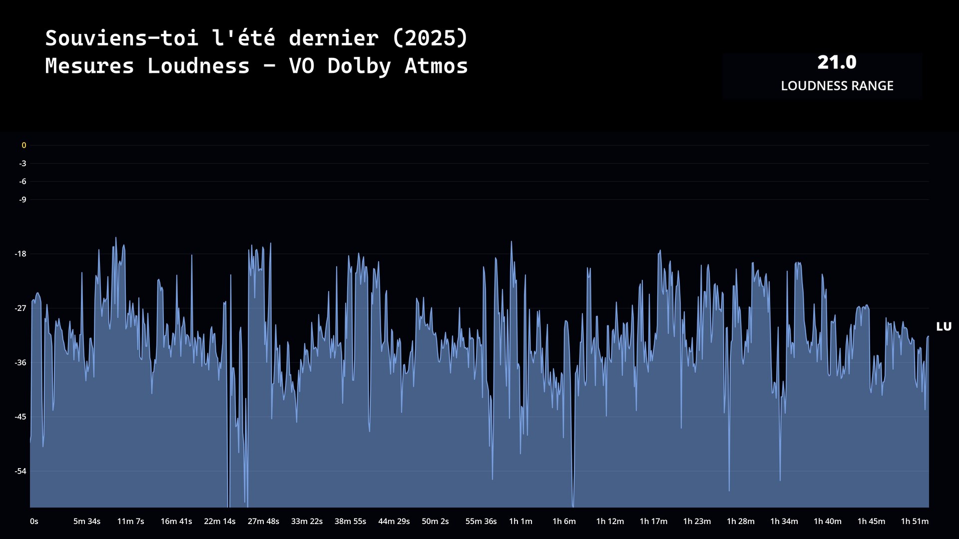 La version française est proposée en DTS-HD Master Audio 5.1 (2340 kbp sous 16-bit). En VO, core TrueHD 7.1 (4131 kbps, sous 24-bit), la valeur de Loudness Range a été mesurée à 21.0 LU.