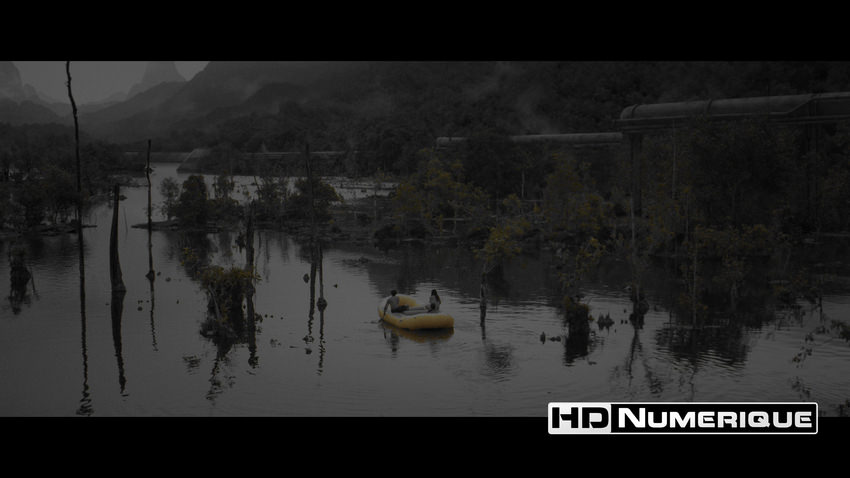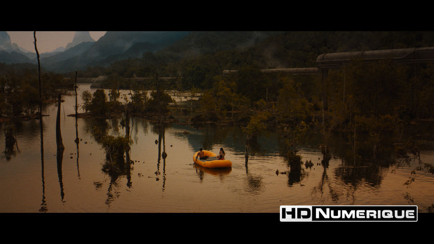 En HDR, la direction artistique reste fidèle à cette philosophie analogique toute en retenue : aucune recherche de brillance artificielle, aucun contraste forcé, et aucune surenchère dans les pics lumineux (mesurés en moyenne à 235 nits). L’image bénéficie toutefois d’un éclat supplémentaire appréciable sur de nombreux éléments — la végétation en plein soleil, les reflets métalliques ou encore les fines réverbérations à la surface de l’eau. Le Wide Color Gamut apporte enfin une contribution mesurée mais efficace, élargissant la palette, notamment dans les dégradés de verts et de bleus en extérieur jour, ainsi que dans les rouges intenses — ceux du système d’alarme InGen dans la scène d’ouverture, ou des fusées de détresse lancées lors des moments de forte tension.