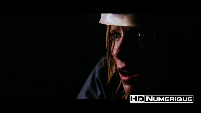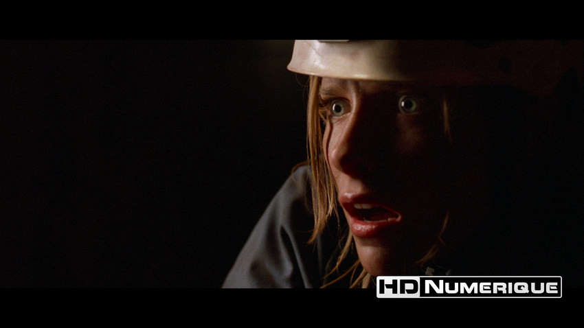 Vingt ans après sa sortie, le constat est sans équivoque : cette restauration est exemplaire. Elle offre une sensation de redécouverte totale. Dès les premiers plans, on remarque que la fenêtre de scan est légèrement plus généreuse. Elle révèle des portions d’image inédites. L’apport du scan 5K se fait aussi rapidement ressentir. Le niveau de définition surpasse largement celui du précédent Blu-ray. Les scènes d’ouverture en extérieur — la descente en rafting et l’arrivée à la cabane — gagnent en clarté et en précision. Elles offrent un rendu immédiatement plus détaillé. Sous terre, la restitution est tout aussi impressionnante. Dans les plans ultra serrés, où la caméra colle presque aux visages paniqués des protagonistes, la définition supérieure change la donne. Elle permet de lire chaque expression (peur, méfiance ou chagrin) avec une acuité nouvelle. La structure du grain de pellicule est maîtrisée avec plus de précision. Elle est soutenue par une compression HEVC plus rigoureuse. C'est là d’ailleurs un point crucial, compte tenu de l’utilisation fréquente de la caméra à l’épaule et d’un montage fiévreux, parfois proche de l’épileptique. La version Dolby Vision (en DV-FEL) se distingue, elle, par une surcouche de compression supplémentaire, mesurée à 17.5 Mbps de moyenne.
