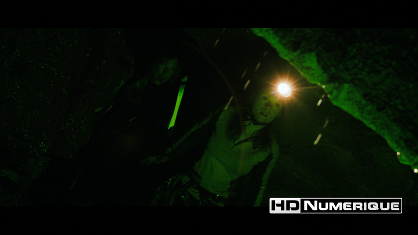 Autre révélation : le traitement des couleurs. Le nouvel étalonnage, couplé à la mobilisation du Wide Color Gamut (WCG), sublime toutes les utilisations dramatiques de couleurs vives. Moins d’aplats, donc. Et on redécouvre des nuances essentielles sur les parois de la grotte et les visages maculés. En WCG, les rouges vifs des fusées éclairantes et les verts intenses des bâtons lumineux crèvent toujours l'écran. Mais ils le font avec moins de dérives, plus de nuance, et en envahissant un peu moins les visages des actrices.