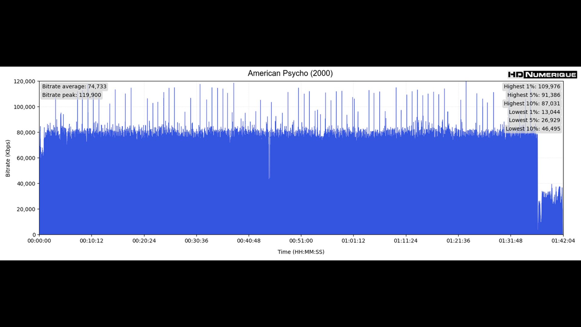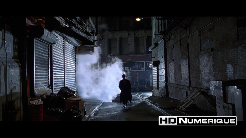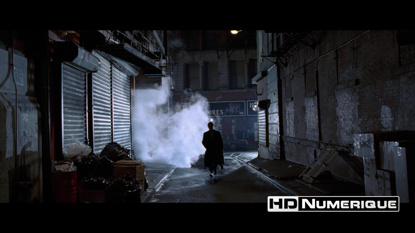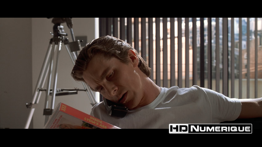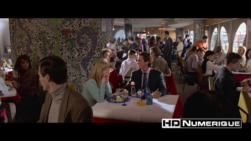 Mais c’est le niveau de définition qui frappe, net comme une lame fraîchement aiguisée. Les gros plans retrouvent une précision troublante : pores de peau, textures de cire, ce visage-masque que Christian Bale façonne avec une froide dévotion. Les plans d’ensemble (au restaurant, au bureau, ou en boîte de nuit), eux, gagnent en structure et en lisibilité. Et sur le terrain de la compression, le disque fait preuve d’une rigueur vraiment exemplaire : un flux HEVC stable et massif, porté par un bitrate moyen de 74,7 Mbps. Il maintient l’image dans un état de contrôle absolu. Rien ne déborde. Rien ne tremble. Tout est à sa place.