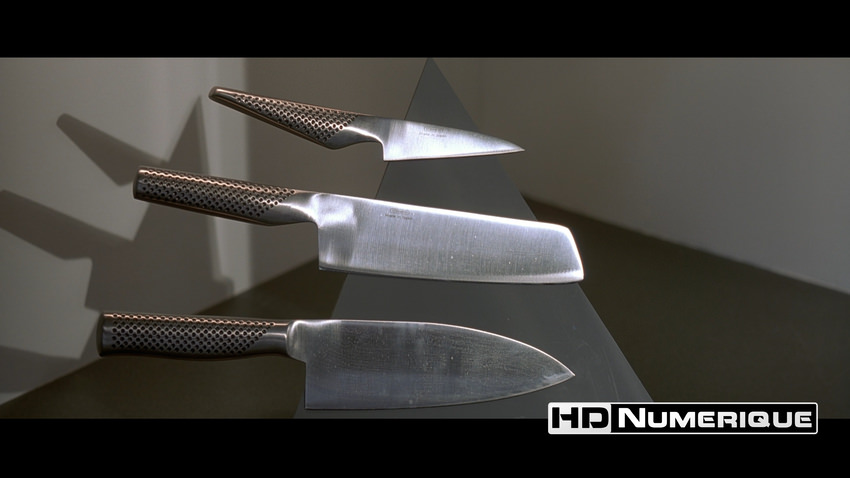 En HDR, on est loin d’une présentation conservatrice avec le constat de franches valeurs d’intensité lumineuses développées. Le nouvel étalonnage révèle mieux les surfaces blanches, omniprésentes, et met l’accent sur la brillance clinique des matériaux. C'est flagrant lors des plans fixes dans l’appartement minimaliste du protagoniste : les reflets sur la table et les verres, la brillance contrôlée des surfaces laquées blanches et les sources lumineuses indirectes (lampes design, appliques) sont joliment rehaussés. Les dérives magenta et les contrastes plutôt grossiers de l'ancienne version laissent globalement place à une présentation rigoureuse et plus juste.