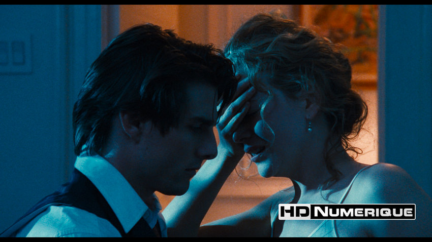 L'expérience visuelle d'Eyes Wide Shut (1999) a toujours reposé sur une alchimie instable, presque vénéneuse. Tourné sur une pellicule ultra-sensible (Kodak Vision 500T 5298) avec un développement poussé en laboratoire (le fameux traitement "push"), le film n'a jamais été conçu pour être "propre". Et c’est précisément ce que souligne avec force ce nouveau master : la matière argentique est ici respectée dans toute sa densité. Cette restauration n’a rien lissé. Au contraire, elle embrasse cette structure de grain lourde, épaisse, vivante, qui fourmille à l'écran avec une fermeté soutenue. Ce n'est pas du bruit parasite qu’il faut chercher à nettoyer. Cette texture fait corps avec l’ADN de l’oeuvre. Elle évoque l’oppression d’un New York intime et nocturne, inquiétant et sensuel à la fois.