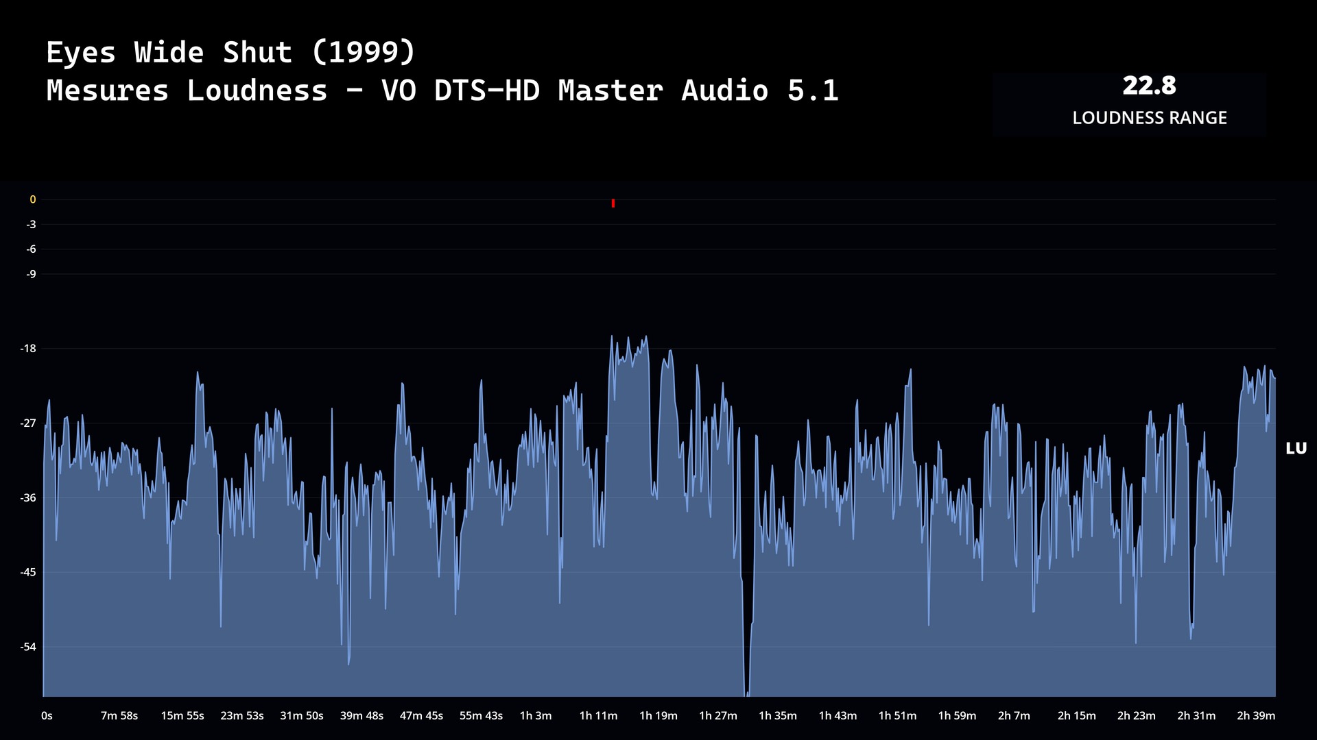 La VO est restituée en DTS-HD Master Audio 5.1 (3083 kbps, sous 24-bit) avec une valeur de Loudness Range mesurée à 22.8 LU (contre 22.5 sur le précédent Blu-ray). On insiste : pas de VF, pas de sous-titres FR sur cette édition USA.