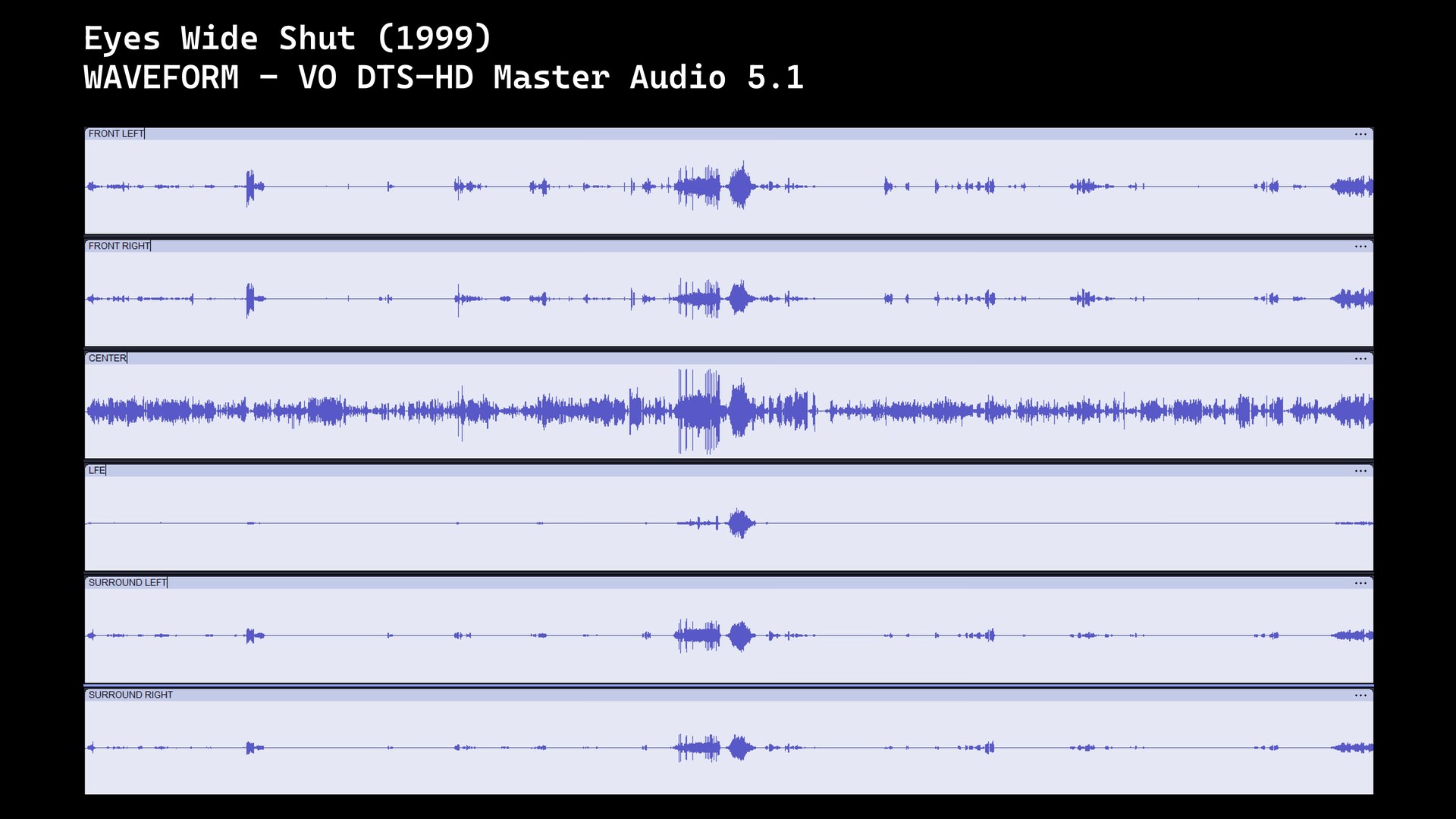 L'édition 4K Ultra HD Blu-ray d'Eyes Wide Shut (1999) fait l'impasse sur toute tentative de remixage Dolby Atmos pour se concentrer sur l'essentiel. Nous retrouvons ainsi une unique piste en version originale DTS-HD Master Audio 5.1, désormais proposée sous une profondeur de signal 24-bit et avec une plage dynamique légèrement optimisée.