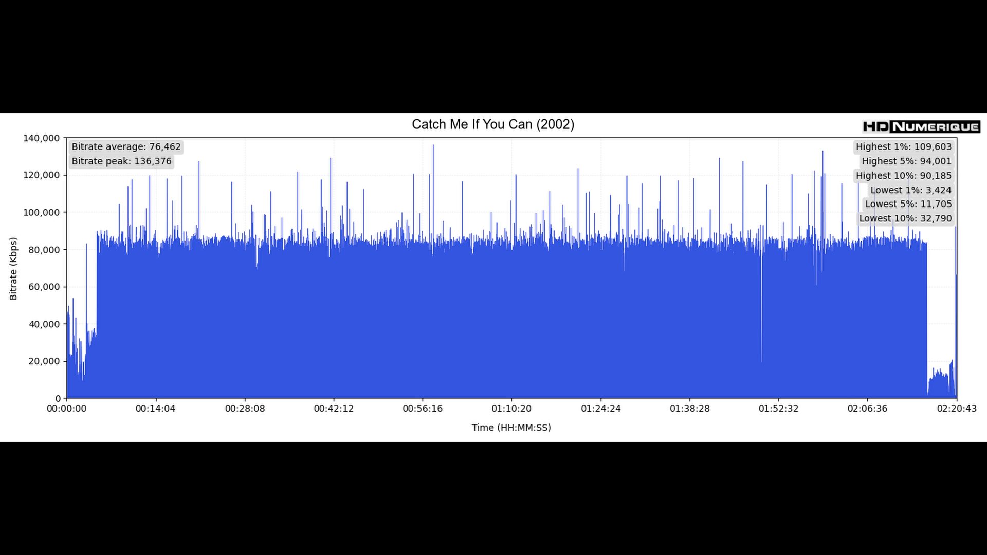 Pour cette édition 4K Ultra HD Blu-ray, Arrête-moi si tu peux (2002) conserve sa piste originale en DTS-HD Master Audio 5.1, identique à celle du disque de 2012. L’absence de remixage Dolby Atmos peut susciter une légère déception, mais elle s’accorde avec la nature intimiste de l’œuvre, conçue comme une étude de personnages portée par les dialogues et le jazz progressif de John Williams. La partition bénéficie d’une présence scénique fluide et naturelle, parfaitement intégrée au mixage. Dépourvue de toute esbroufe, la spatialisation privilégie un réalisme presque « documentaire ». L’auditeur est ainsi immergé avec efficacité au cœur des lieux traversés : les halls d'aéroports bondés, les bureaux du FBI composés d'un personnel concentré. Les canaux surround ne sont jamais sollicités de manière artificielle ; ils enveloppent doucement le spectateur, en relayant essentiellement les notes de la bande-originale. Et ponctuellement quelques effets atmosphériques (la pluie battante à 4mn50, l'orage à 1h16) et ambiances urbaines (l'aéroport de Miami à 1h43). Le canal LFE reste lui diablement inactif.