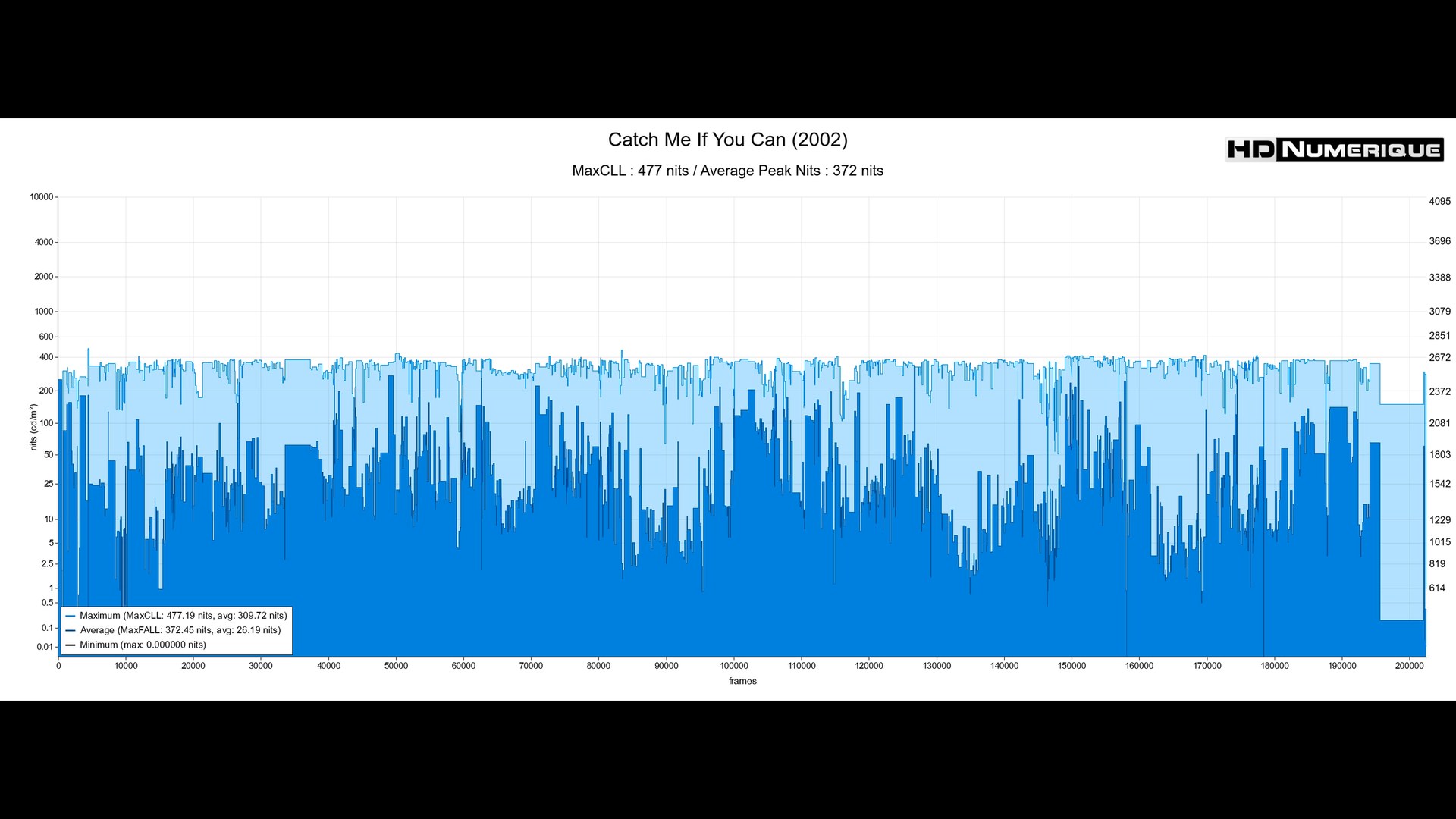 L'apport le plus évident réside dans la gestion des hautes lumières et des ombres détérées. La signature visuelle de Kamiński, faite de lumières diffuses et de halos vaporeux trouve un partenaire à sa hauteur avec le HDR. La moyenne des pics lumineux a été mesurée à 309 nits. Concrètement, les reflets spéculaires sur les chromes ou les sols polis des aéroports gagnent en intensité réaliste. Le travail sur les contrastes redonne du poids et du volume aux objets. Enfin, l’étalonnage réchauffe les carnations, désormais imprégnées de teintes jaune-orangé plus profondes. Elles absorbent la lumière chaude et glamour avec une proximité inédite par rapport au Blu-ray antérieur. Le film respecte aussi une complémentaire teal/cyan un peu plus affirmée .