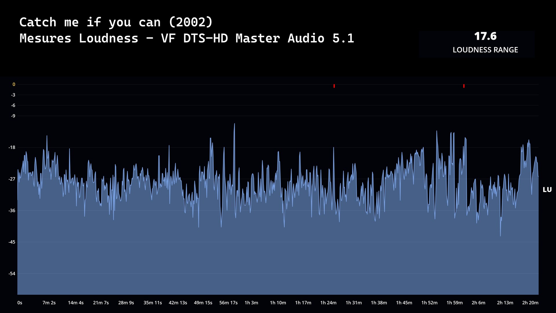 La VO est restituée en DTS-HD Master Audio 5.1 (3988 kbps, sous 24-bit) avec une valeur de Loudness Range mesurée à 17.6 LU. Les versions doublées, dont celle en français, restent cantonnées au Dolby Digital 5.1 (640 kbps).