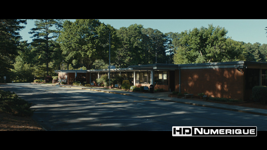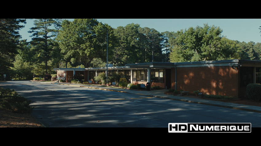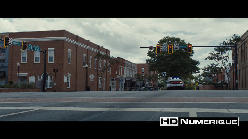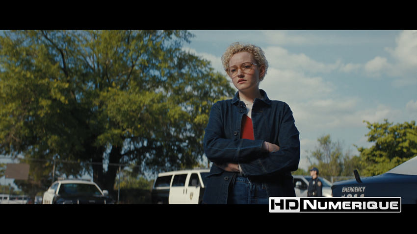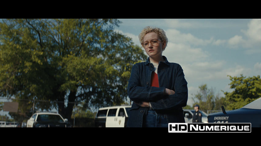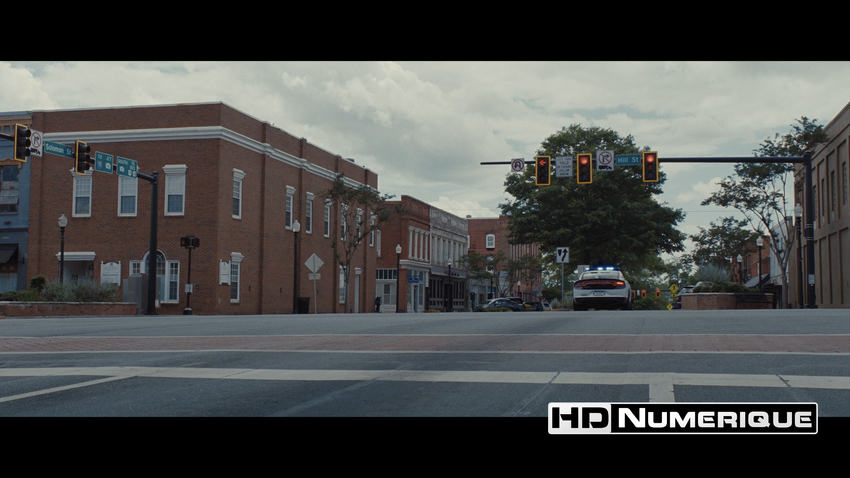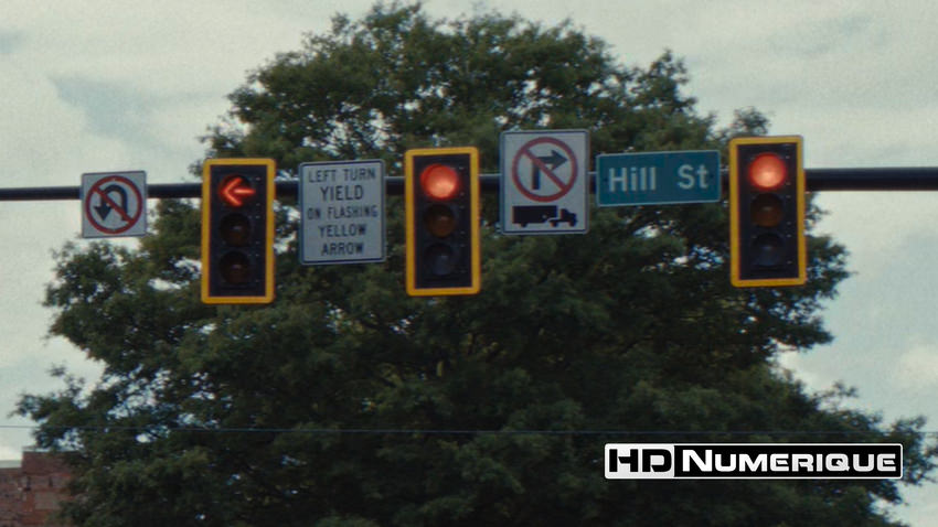 Évanouis (2025) est une œuvre dont l’ADN visuel repose sur la privation de lumière. L’approche HDR se révèle extrêmement sobre et contenue. Avec une moyenne de pics lumineux mesurée à un modeste 88 nits, il ne faut pas s’attendre à des fulgurances solaires ou à des jeux de lumières plus intenses. La différence avec la version SDR demeure subtile, se jouant davantage sur l’ajustement des contrastes plan par plan que sur un éclat renforcé des hautes lumières. Et brisons tout de suite le mythe : le film mobilise très peu le gamut de couleurs étendu. Même si les verts des jardins pavillonnaires de Pennsylvanie peuvent parfois attirer l’attention, la palette est retenue. Elle privilégie les teintes froides, les bleus grisés, les ciels d’ardoise et les tons terreux, traduisant visuellement le deuil et la torpeur de la communauté. C’est une image sombre, exigeante, qui nécessitera impérativement un visionnage dans une pièce plongée dans le noir complet pour être appréciée à sa juste valeur.