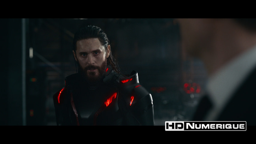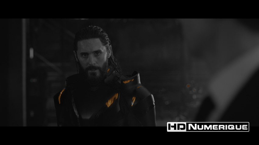 Sur le plan de la définition, nous sommes face à une démonstration de force de la captation numérique moderne. L'image se distingue par une propreté clinique absolue, évacuant toute trace de grain (hormis quelques séquences flashbacks stylisées) pour embrasser une esthétique lisse et hyper-détaillée. Le gain qualitatif face au Blu-ray reste appréciable. La définition 2160p permet d'apprécier la complexité folle des arrière-plans de la "Grille" et surtout la lisibilité des micro-informations : les lignes de code, les données télémétriques des interfaces utilisateur (UI) et les éléments holographiques s'affichent avec un piqué d'une précision chirurgicale. Les gros plans ne sont pas en reste, détaillant plus finement les traits de Jared Leto et autres poils de barbe de Jeff Bridges.