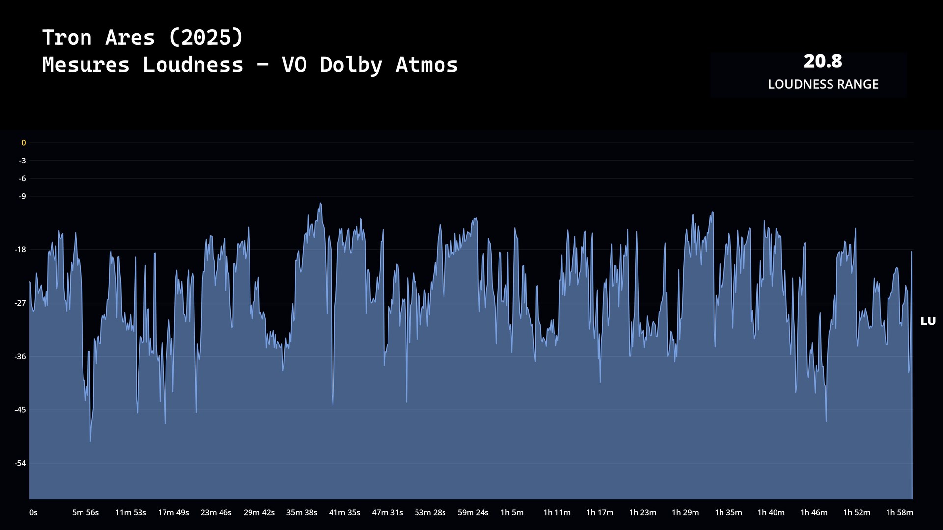 La valeur de Loudness Range a été mesurée à 20.8 LU pour la version originale Dolby Atmos (5405 kbps, sous 24-bit). Cette édition (import USA) bénéficie d’une VFQ Dolby Digital Plus 7.1 (1024 kbps).
