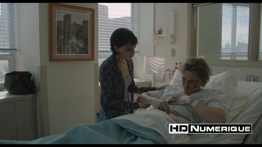 Visuellement, le film prend le contre-pied total de nombreuses productions aseptisées actuelles. L'image se veut sale, usée, presque dégradée. La texture granuleuse dont il est question naît d'un mariage audacieux entre le bruit numérique naturel généré par une captation à haute valeur d'ISO et l’ajout d’un grain de film épais en post-production. Loin d'être un défaut, ce rendu presque "crasseux" matérialise la psychologie de Hank (Austin Butler) et transforme les décors exigus en véritables territoires oppressants. Sur ce disque 4K Ultra HD Blu-ray, l'encodage se montre impérial. Avec un débit binaire robuste oscillant entre 70 et 90 Mbps, la compression HEVC restitue ces textures complexes sans jamais céder au moindre artefact, même lors des transitions délicates entre les séquences diurnes vaporeuses et les nuits troublées new-yorkaises.