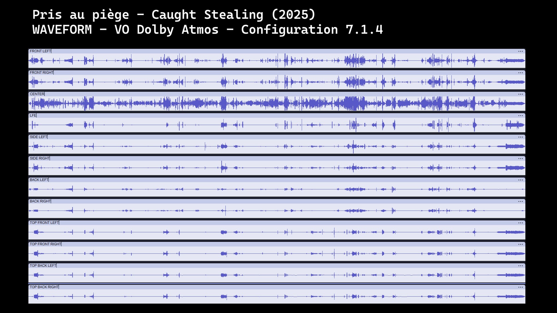 La grande réussite technique de cette piste réside dans l'intégration de la bande-son du groupe IDLES. Les batteries motorik, les voix aboyées et les guitares distordues sont traitées comme des objets sonores, repoussés ici vers l'hémisphère supérieur et sur d’autres passages vers les canaux latéraux. L'aspect paranoïaque du récit est également magnifié par la verticalité propre à la technologie Atmos. Outre les scènes de bagarres en bar, la séquence de l'accident de voiture mérite une mention spéciale pour son utilisation psychologique des canaux supérieurs, simulant la désorientation interne d'une commotion cérébrale. Des extraits de cette piste singulière sont disponibles en écoute binaurale dans notre vidéo jointe.