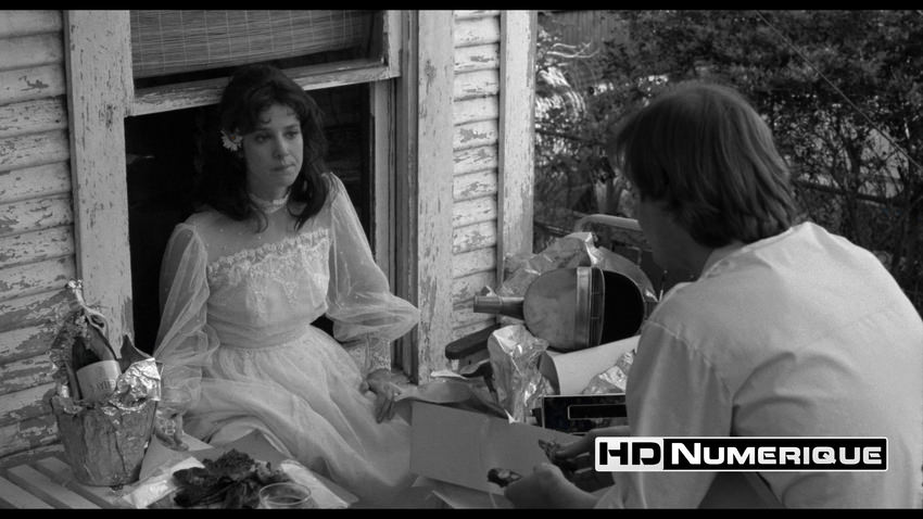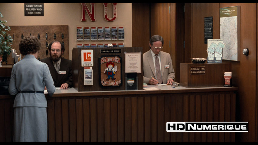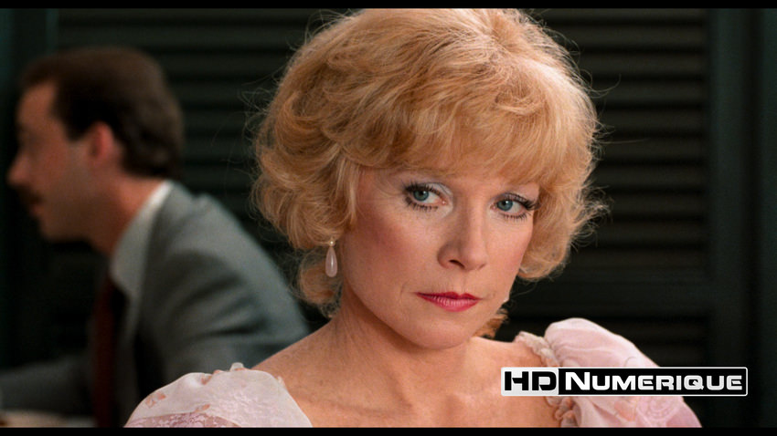 Le premier apport majeur saute aux yeux dès l'entame : la correction du format d'image. Là où le Blu-ray de 2013 imposait un ratio 1.78:1 destiné à remplir l'intégralité des écrans 16/9, cette édition UHD rétablit le cadrage 1.85:1 voulu initialement par Andrzej Bartkowiak. Le nouveau scan offre aussi un gain de définition considérable. On ressent toujours une forme de douceur nostalgique dans ces images. Mais la récupération d'informations dans les détails fins est tangible : la trame des tissus, les éléments de décor foisonnants de la maison d'Aurora et la porosité naturelle des visages — dont la barbe de trois jours de Jack Nicholson — gagnent en précision et en relief. Si le grain 35mm est bien présent, assurant une patine organique, l'encodage HEVC montre encore quelques signes de faiblesse. Cette compression perfectible peine à stabiliser le grain sur les zones uniformes, engendrant une légère fébrilité perceptible sur les ciels et les vastes surfaces murales.