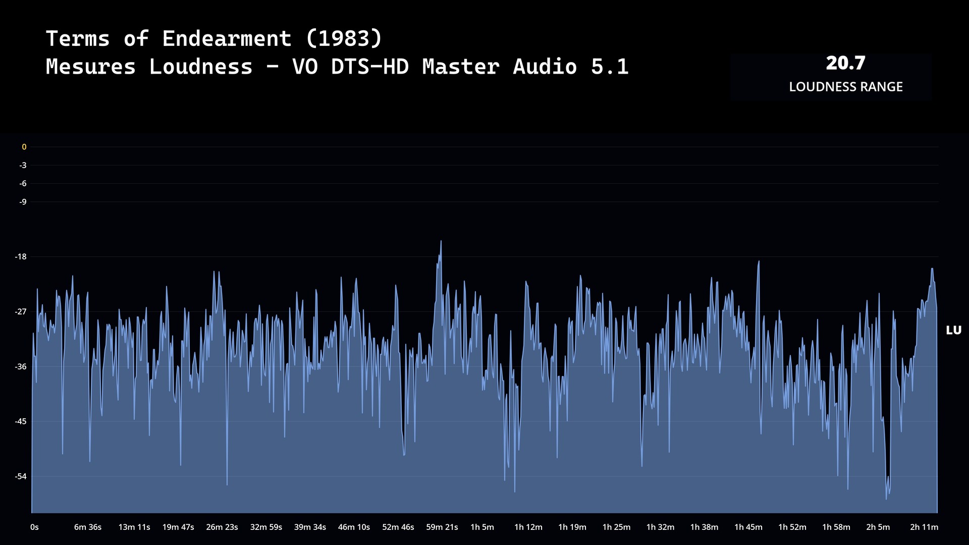 La valeur de Loudness Range a été mesurée à 20.7 LU pour la version originale DTS-HD Master Audio 5.1 (3483 kbps, sous 24-bit). Cette édition (import USA) bénéficie d’une VFF Dolby Digital 2.0 Mono (224 kbps).