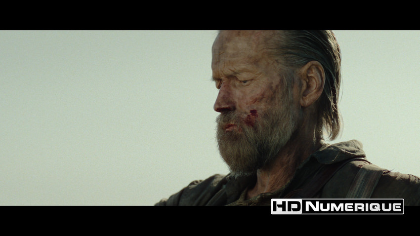 Sur le plan chromatique, l’étalonnage installe un climat lourd, presque suffocant. Les gris métalliques et les bruns terreux dominent le cadre, tandis qu’un ciel jaunâtre toxique, presque maladif, écrase les silhouettes. L’ensemble respire la froideur, la stérilité, l’empoisonnement latent. L’apport du HDR se révèle toutefois déterminant. Fidèle à l'esprit grindhouse viscéral voulu par le réalisateur Jalmari Helander, l'image s'embrase davantage ! Le rouge écarlate de l'hémoglobine et l'orange incandescent des souffles explosifs vont un cran plus loin, cisaillent la monotonie des décors. Reflets métalliques, flashs aveuglants des détonations, luminaires à bord du train en route pour la Sibérie profitent aussi, sur la version HDR, d’un surcroît d’intensité lumineuse bien appréciable.