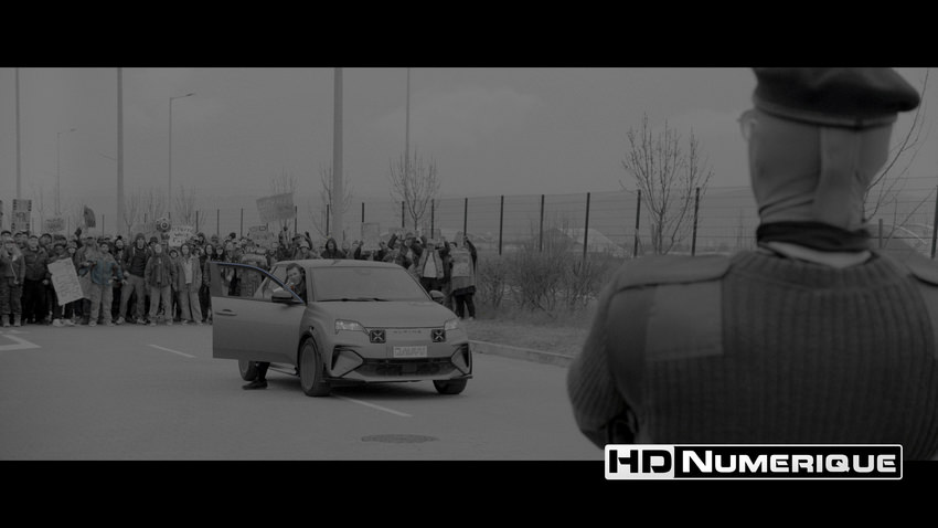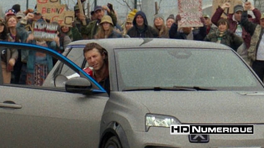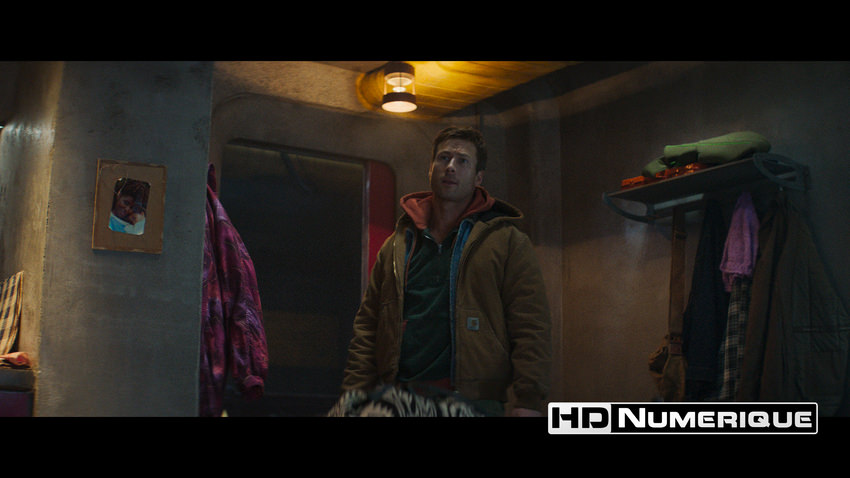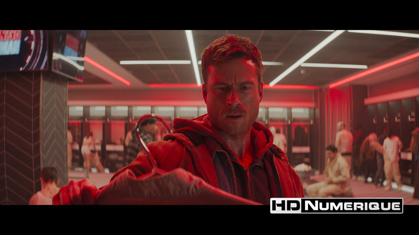 Bien que captée en numérique, l’œuvre revendique un parti pris esthétique affirmé. Chung s’attache à insuffler une texture d’inspiration analogique particulièrement perceptible. Sur cette édition UHD, le rendu reste toujours très convaincant. Mais dès les premières séquences, illustrant le quotidien précaire de Ben Richards, un grain volontairement rugueux — ajouté en postproduction — unifie les différentes sources d’image tout en instaurant une sensation d’inconfort bien tangible. En UHD, la définition se distingue subtilement par une précision notable sur les gros plans, révélant la sueur, les impuretés et la pilosité d’un Glen Powell en constante lutte pour sa survie. Et lorsque le récit se déploie au sein de l’arène de la chaîne « Free-Vee », la complexité géométrique des plateaux ainsi que les micro-détails des costumes des Runners bénéficient d’une lisibilité exemplaire. L’ensemble est soutenu par une compression maîtrisée, caractérisée par un débit stable (63.4 Mbps avec surcouche FEL).