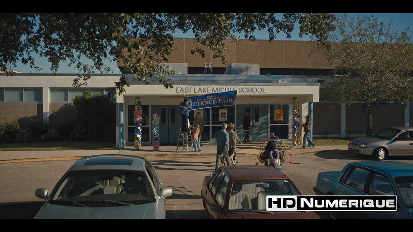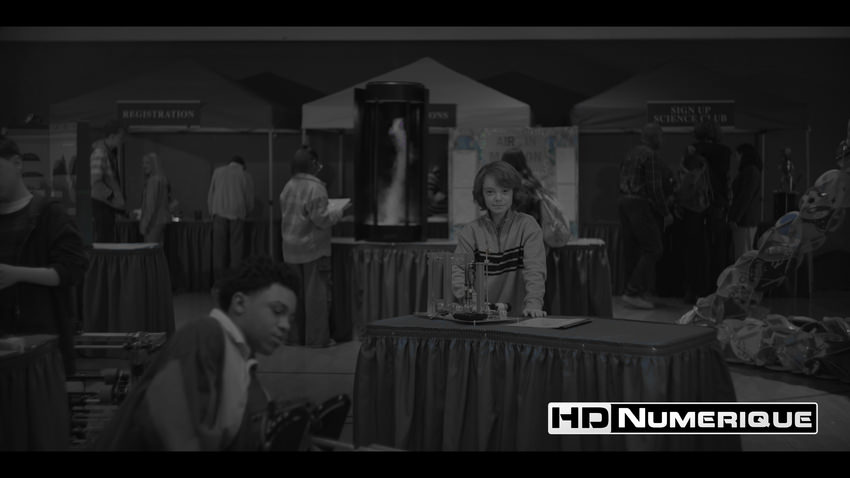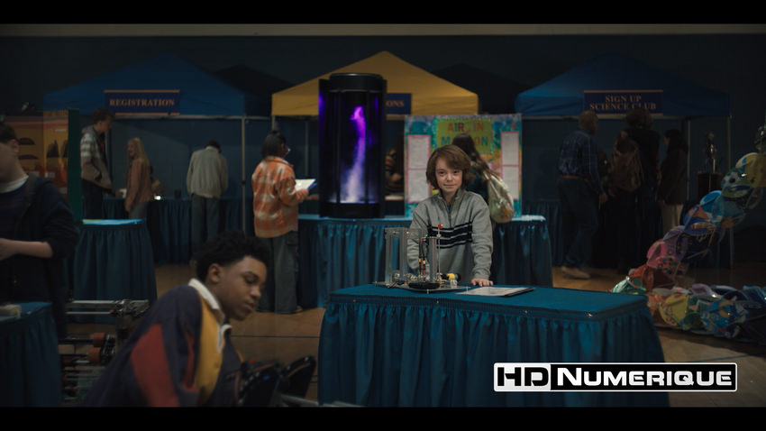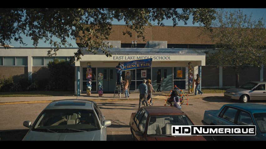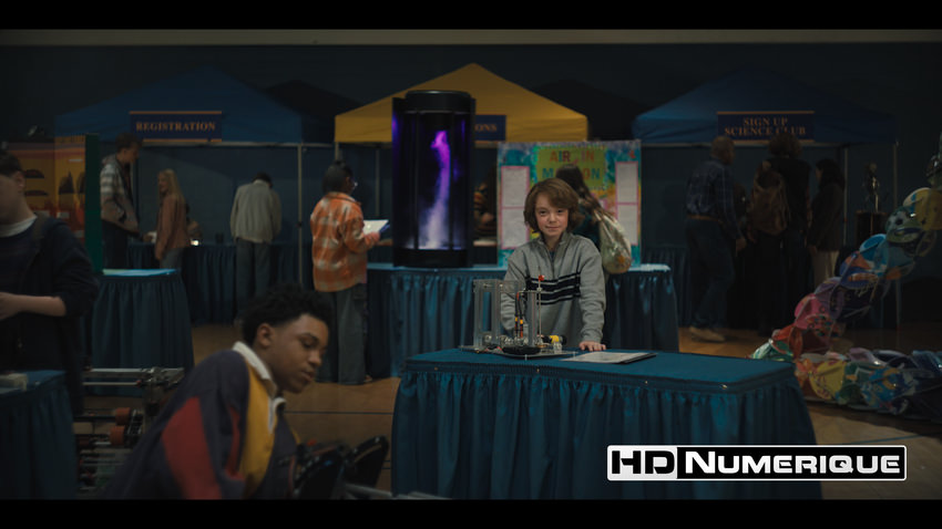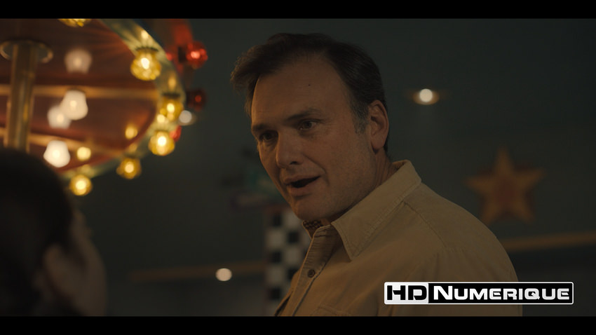 Enfin, le Wide Color Gamut est mobilisé avec cohérence pour accentuer les complémentaires teal/cyan et renforcer l’hommage à la culture pop des années 80, perceptible dès les premières scènes. Les couleurs primaires s’expriment avec une intensité marquée : rouges saturés des bornes d’arcade, jaunes fluorescents et bleus électriques dominent l’espace visuel. À l’inverse, lorsque le récit s’extrait de ces décors fantasmés pour suivre le quotidien de Mike, la palette se fait plus mesurée. Le monde réel adopte des tonalités terreuses, neutres et sobres, tout en étant subtilement baignées d’une mélancolie diffuse.
