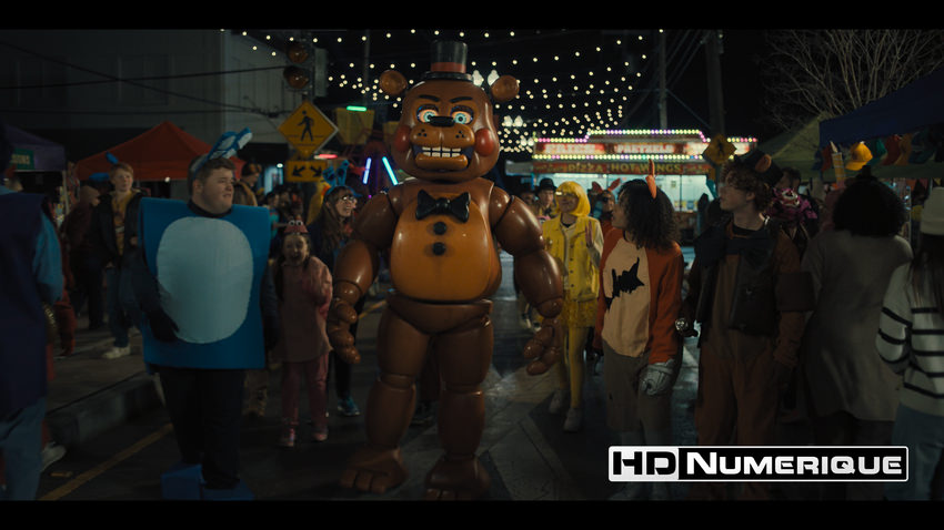 L’un des fondements artistiques majeurs de cette production réside dans son attachement aux effets pratiques et dans son hommage assumé à l’esthétique des années 80. La précision chirurgicale de l’Alexa 65 magnifie le travail minutieux apporté aux animatroniques, notamment les déclinaisons “Toy” — Toy Chica, Toy Freddy ou encore la troublante "Marionnette". Le piqué impressionne par son acuité constante, restituant avec une finesse remarquable les textures : traits des visages horrifiés, condensation sur les surfaces plastiques ou micro-détails des articulations métalliques. Dépourvue de grain artificiel en post-production, l’image affiche une propreté exemplaire, soutenue par une gestion du bruit particulièrement maîtrisée dans les basses lumières. Si l’édition Blu-ray 1080p se distingue déjà par la qualité de sa source, cette version Ultra HD franchit un cap supplémentaire. Elle se démarque par une fenêtre de scan légèrement élargie et une lisibilité accrue des détails fins, qu’il s’agisse des nombreux écriteaux disséminés dans les différents environnements (restaurant, salle de classe) ou des petits éléments de décor en arrière-plan.
