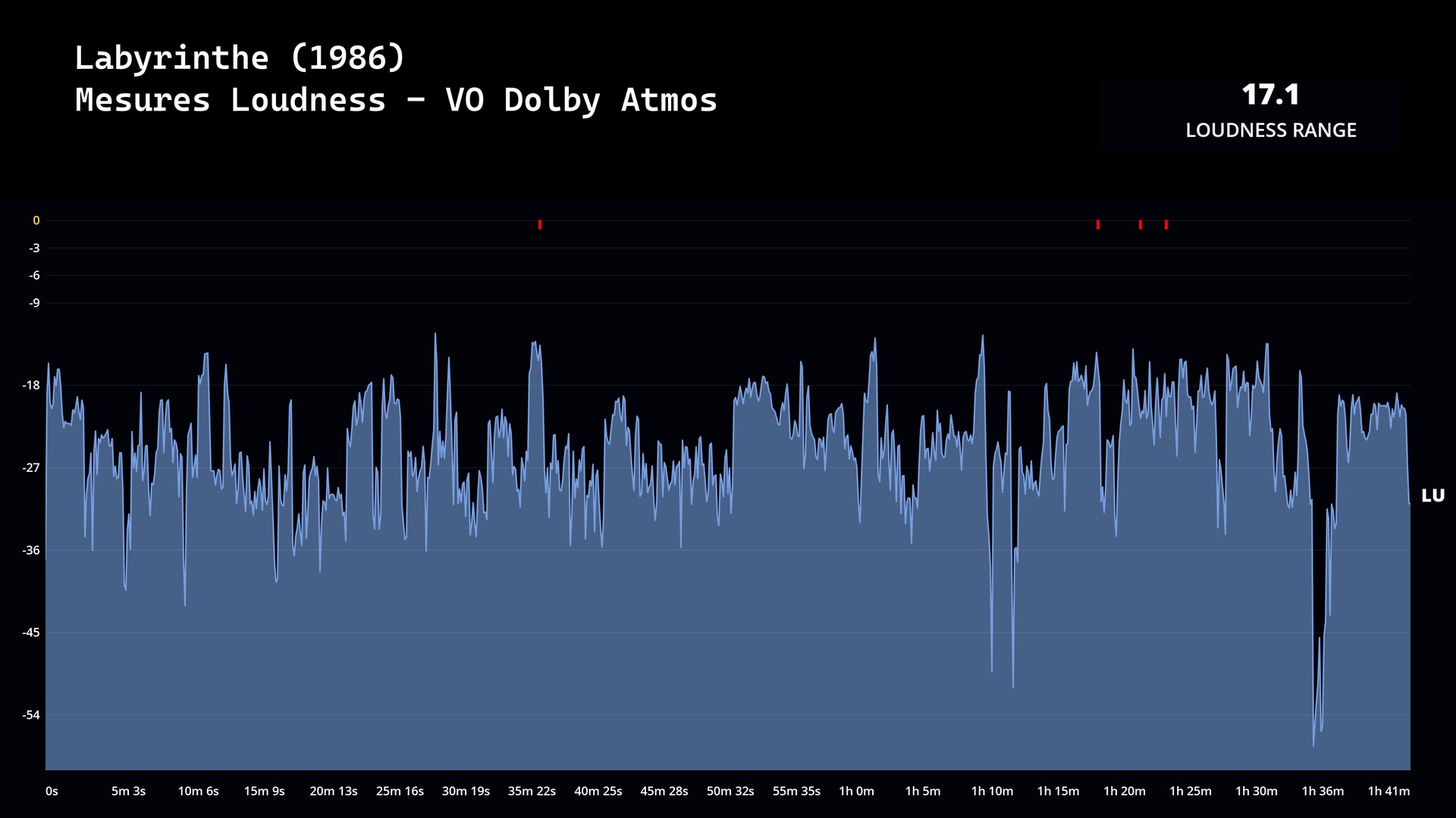 La piste française demeure proposée en DTS‑HD Master Audio 5.1 (débit moyen : 2 270 kb/s, encodage 16 bits), tandis que la version originale conserve ses mixages antérieurs en 5.1 et 2.0 (DTS‑HD Master Audio). À noter qu’en VO Dolby Atmos, la valeur de Loudness Range a été mesurée à 17,1 LU.